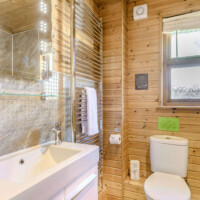 These two-bed traditional wooden Alpine style lodges are ideal for a family getaway or a couple looking for a bit of extra space. There is an en-suite with a bath and overhead shower. The kitchen is well equipped and all the modern conveniences you require during your visit. Outside on there is a small covered private terrace with table and chairs for some alfresco dining.