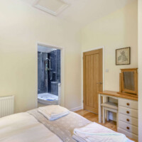 - A king sized ensuite bedroom. The king sized bed is made up with crisp white cotton linen. Bath towels, hand towels, bathmats, robes, luxury hand soap, shampoo and conditioner are supplied.